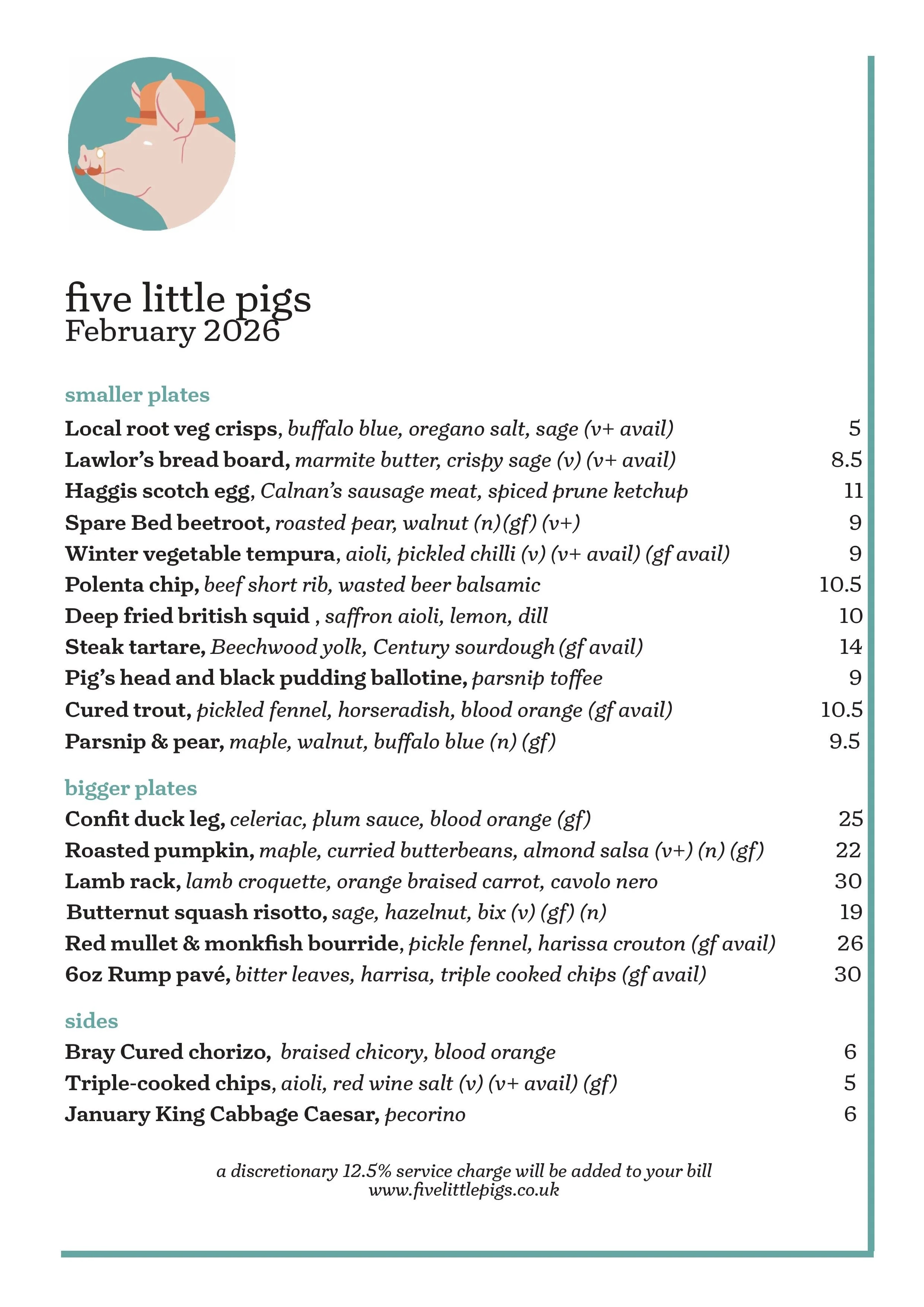 The menu below is a sample menu, and our dishes change regularly in line with the seasons and our suppliers’ availability.